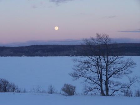 The opposite of a heat wave moved in that night, the sky so clear it seemed as if whatever heat could possibly be generated simply vanished into the void of outer space. The sun did what it could in the morning — which wasn’t much — but the wind snatched away its good work. Chores went slowly in the cold but we got them done and, after a quick bite to eat, I was off across the ice to shore and then to town for the first time in nearly two months.