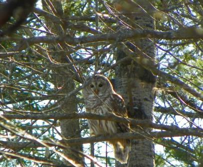 A Barred Owl has been showing its concern for the welfare of the chickens, flying in every afternoon for a look-see.