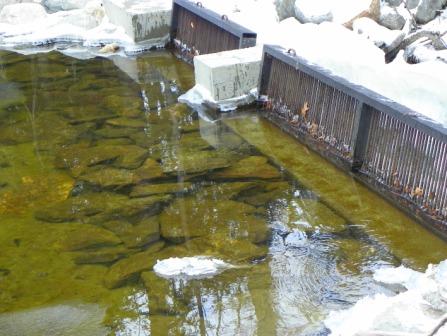 Bashing ice and frozen leaves from the spillway got me outside on a day I’d have rather stayed in, but I’d have missed out if I had. So many of the day to day events that take place here are short-lived and you have to be here when they occur or it’s like they never happened, like the hatch of blue winged olives on a September Saturday that no one fished because it was raining (I was working and watched the rises). Guys complained about the fishing after not fishing at all, but they missed out. By the time the sun came out on Sunday the hatch had ended, observed by no one but me.