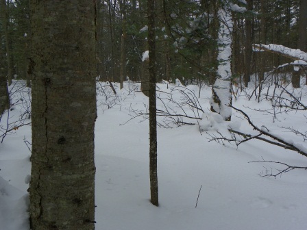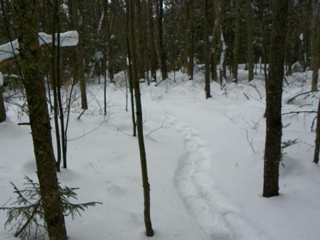 There are times when any opening in the trees seems as good as another but things are not always as they seem. There is a trail around Fish in a Barrel Pond and, no matter how many times I tromp it down, regular snow-fall fills it back in. If it was only me using the trail, I wouldn’t worry about keeping it open, but it is not so I do. Some members of the Neverwas Nonesuch Angling Society like to get out once in a while, and when two of them came up last week I told them I hadn’t been out since the last big snow but they said it wasn’t a problem; they knew the way and they would be happy to break the trail for me.
