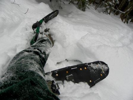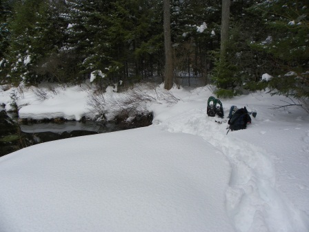 Snowshoes are the only way to travel through these thick woods in deep snow. I enjoy getting out this time of year and I am glad to open a safe sensible trail for others to follow. It has been said that snowshoes make the impossible difficult and I find this to be true. Without my snowshoes, there would be no way to do this: