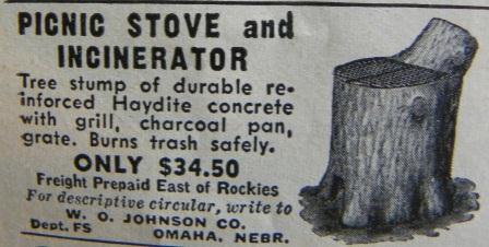 The combination of a charcoal stove and trash incinerator, cleverly disguised as a tree stump, had its share of detractors, primarily due to cost.