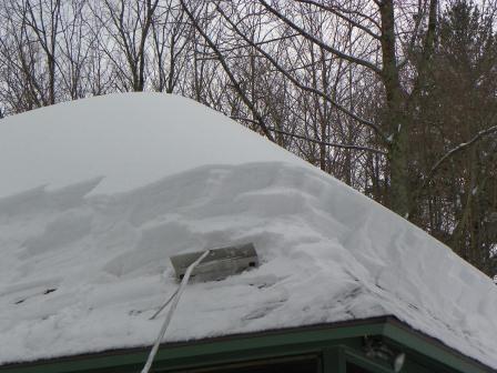 I’ve gone on about this roof raking business before, in “Quill Gordon and the Roof Rake” among other places. To me, it’s like deja vu all over again, all this shoveling and plowing and raking, and a picture from one winter looks pretty much like a picture from another.