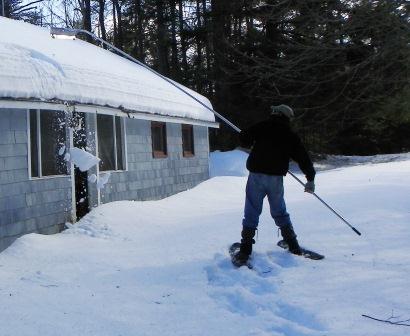 But the more I repeated that phrase the more it sounded like an entry in a forthcoming book titled “Famous Last Words of Caretakers”  and I became determined to see to it that nothing of the sort would ever be attributed to yours truly, Quill Gordon. I gave in before the roofs did, grabbed a shovel, the roof rake and four sections of shaft, strapped on the snowshoes, and went to work.