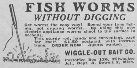 You just know that in 1947, the $1 electric MAGIC WORM WANDS were sturdy (and safe). But what if you had a worm emergency away from home, in place without a handy electrical outlet?