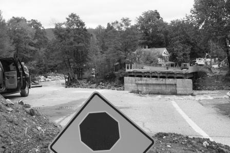 A number of towns were completely isolated when bridges and roads washed away. “Washed” is a bit tame; concrete and steel structures were completely dismantled and destroyed by the raging, projectile-laden flood. The old joke “You can’t get there from here” was true enough before Irene but in her aftermath it was a rubble-strewn fact. The Town of Jamaica was one of those places.