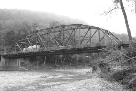 This bridge outside Bethel sits high above the river and survived the flood, allowing heavy equipment traffic, like the cement mixer above, to move ahead with clean-up and reconstruction. To get an idea of the magnitude of the wall of water that came through, look at the girders on the underside of the bridge: