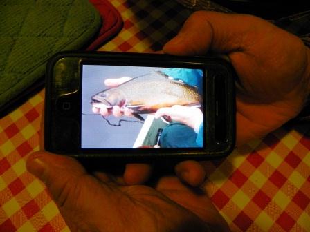 It turns out that not only can Mr. Bastian work wonders with feathers, tinsel and thread at his vise, he is also fairly competent with the finished product in the water, as evidenced by the picture on a phone I was shown one night while he was here: