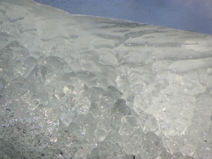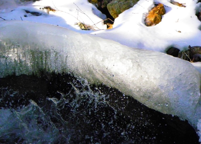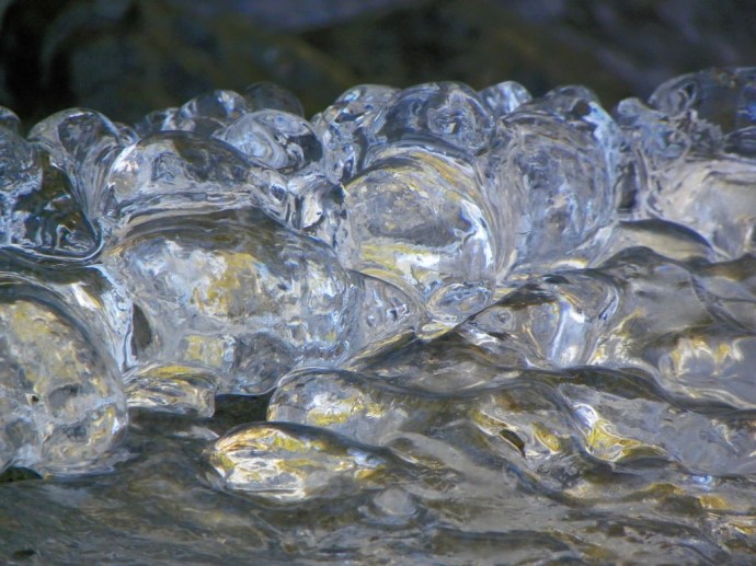 • Hi, Steve. The last photo is ice, taken where the water flows more than it splashes. I like it. It’s nice and abstract, and the lighting was just right. I put it up untouched by any filters or digital manipulation …