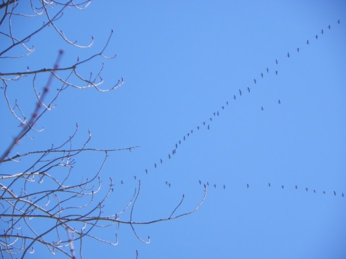Geese by the hundreds streamed overhead, moving northeast to Lake Champlain and beyond, while half a dozen pairs dropped in, biding their time at the beaver pond until more space opens up and they can take their chances raising families among the snapping turtles and mink.