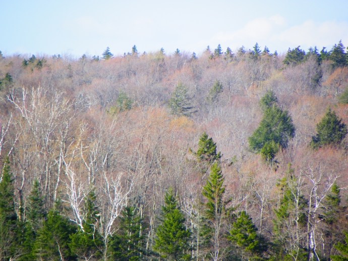 Color returns to the hillsides as a gauzy, pastel haze visible from a distance but, up close, the woods are still the color of coyotes and grouse.