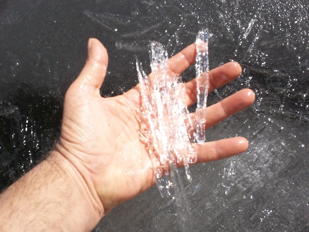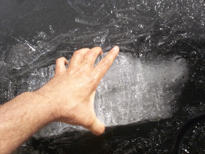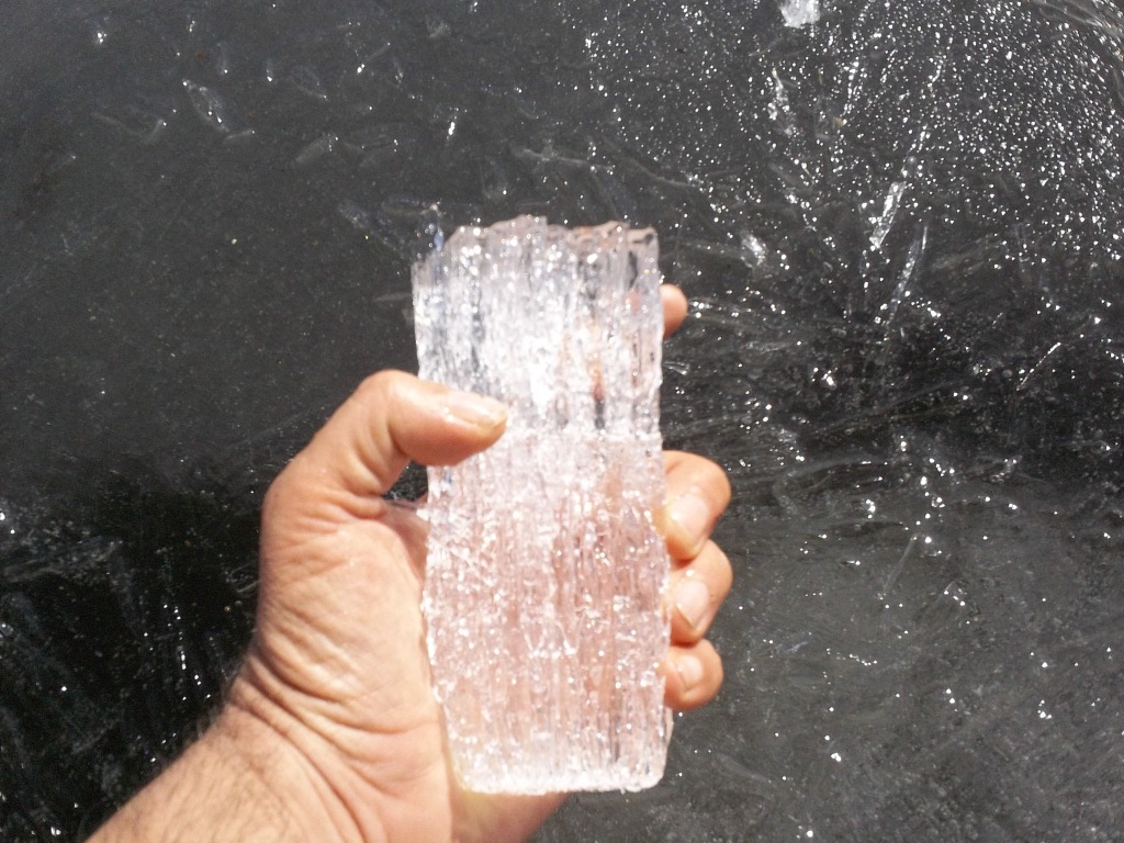At its peak, the ice fractured like quartz when struck, with hard chips flying in all directions; by this past Tuesday, a simple squeeze was all that was needed to see how its structure had changed.