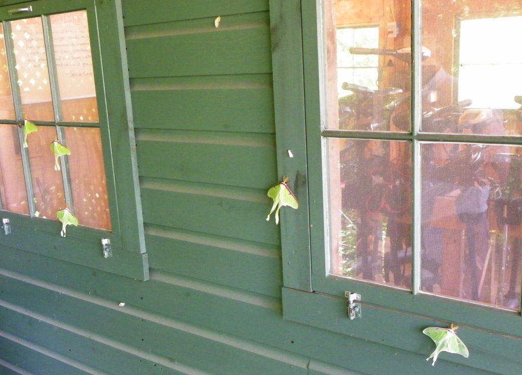 Leaving the lights on at night brings in all kinds of bugs. On just a few nights a year those bugs include luna moths, like this group on the wall of our motor shed.
