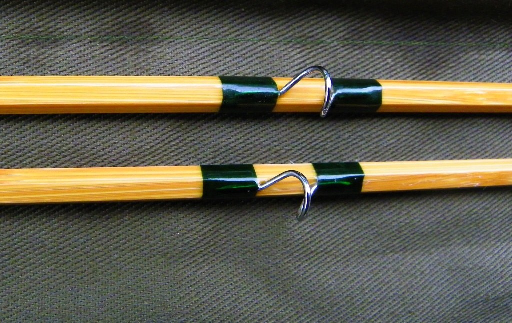 The Fall River Rods “South Fork” is a two-piece, 8 ft, 5wt rod, and comes with two perfectly matched tip sections. The second tip that comes with many bamboo rods is meant to be a spare, just in case, so an angler can continue to fish should the other one (gasp!) break or be out of service for repair. The two tips with this rod appear to made from the same piece of bamboo and are identical, right down to the positioning of the nodes on each strip.