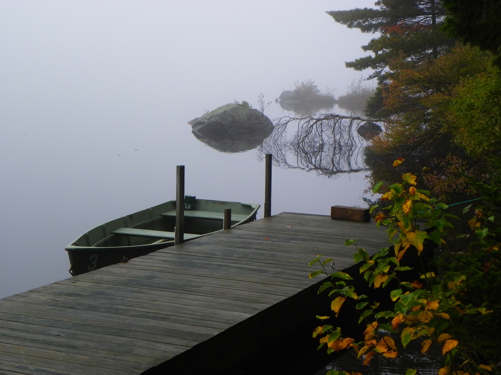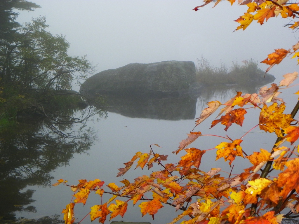 On sunny autumn days, the colors can appear washed out or faded. A few cloudy days helped the colors really stand out, but then the clouds lowered and Fish in a Barrel Pond was fogged-in for close to two days straight, changing the whole scene.