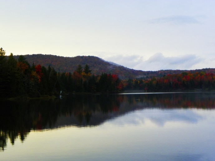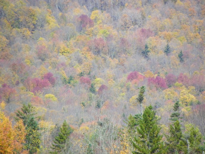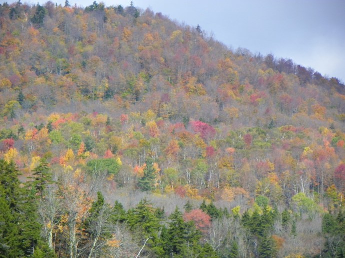 People travel to Vermont from all around the world, hoping to catch the leaves at their peak. It can’t be predicted in more than a general way so they take their chances riding in buses and cars, speeding through the countryside on a search for the elusive, perfect view. Actually, most do not “speed through the countryside”. They drive real slow, making a simple half-hour run to the hardware store and back take forever, but they still move too fast, for the best way to catch those perfect moments when they happen is not by driving around looking for them, but rather by being there when they happen (and hoping the fog lifts in time to see them).