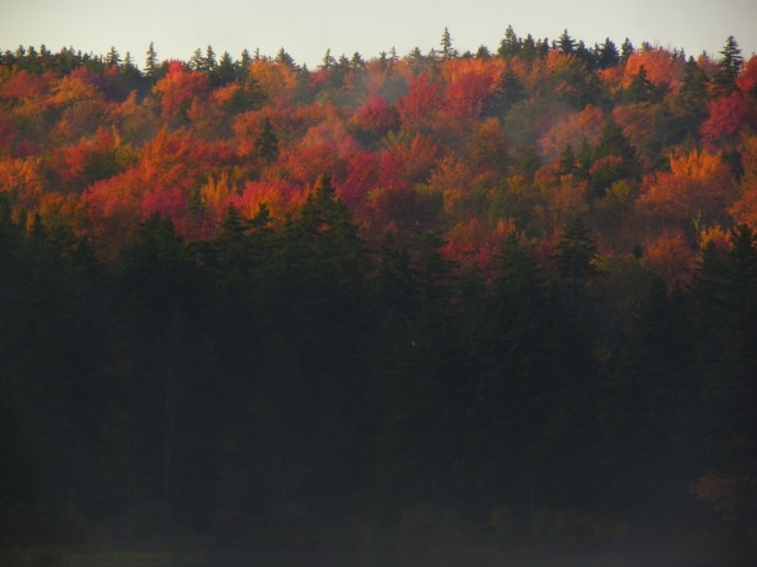 As the mist withdrew, unfiltered morning sun filled the valley and I stopped taking pictures, for two very good reasons. First, no photo could ever do the scene justice, no matter how skilled the photographer (I’m sure a painter would have been driven insane) and, secondly, when presented with what was absolutely, positively “peak color,” one shouldn’t take in such fleeting sights through a viewfinder. The feel and smell of the crisp, clean air, the sounds of geese passing overhead, coming together in the ethereal glow of summer’s last hurrah to form a perfect moment that lasts for an hour or less, is best experienced with one’s entire being. Trying to save it as anything other than memory misses the point.
