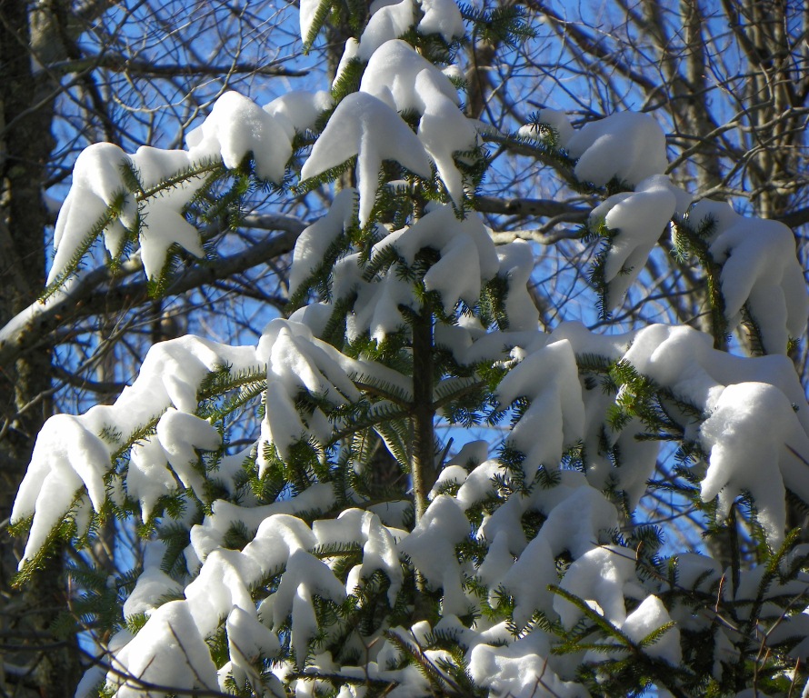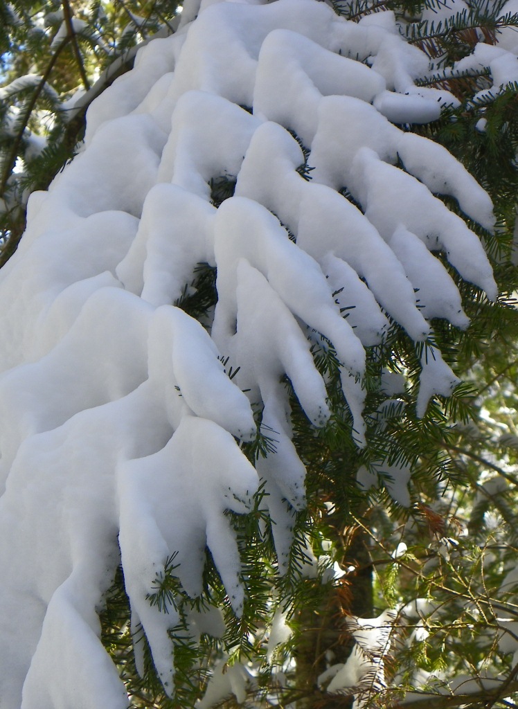 Intertwined shards of snow crystals fused into a solid mass that clung to the trees even as the sun came out and the temperature rose today.