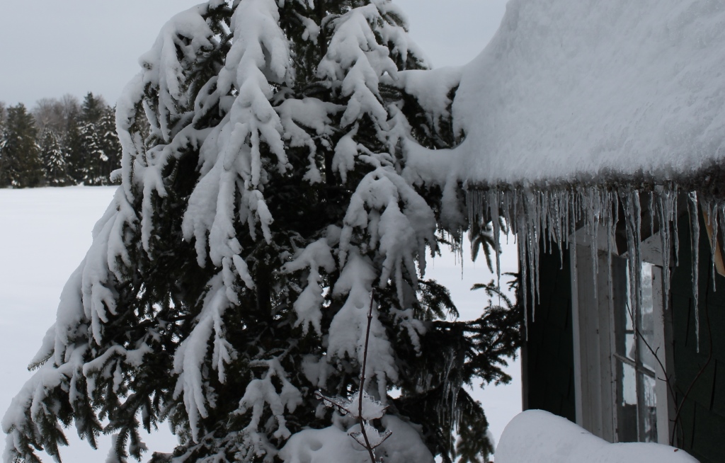 Maple sap runs best when daytime temperatures rise above freezing and nighttime temperatures fall well below. Day and night, we’ve spent a lot of time below freezing lately, and the sap has barely crawled, let alone run. Over on Bobo’s Mountain, a couple of relatively mild days resulted in a few hundred gallons of sap making their way to the bulk tank, where they froze overnight into a sweet, solid block. My friend Tina describes the situation in her post titled, “Ice Out”. (Poke around bobosmountainsugar.com while you’re there, get to know the place and the people involved and order yourself a big old jug of sweet, maple goodness.)