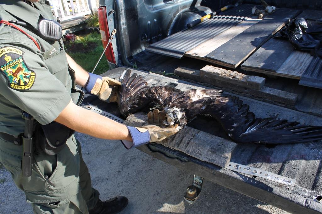 One of those guys who’s always pretending to shoot stuff told me there was a dead bird in the water in Green Damselfly Cove a couple of years ago and, even though I hadn’t heard gunshots, I had to wonder. Being the kind of guy I am, I retrieved the carcass and turned it over to the Game Warden, who agreed to stand still and lend my pictures of a dead osprey a little more credibility than old Jack’s up there.