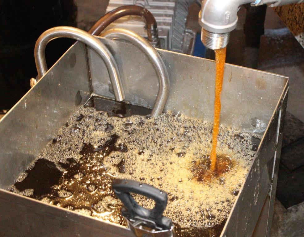 The composition of the sap changes as the season progresses and the trees get closer to their bloom time. What once roiled smoothly through the pans turns to hot foam, a bubbling, caramel-colored menace.