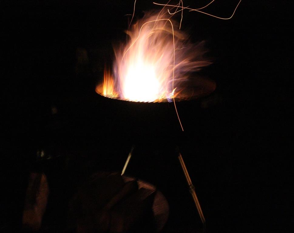 It takes a hot fire to boil down sap to syrup and also to cook in the rain.