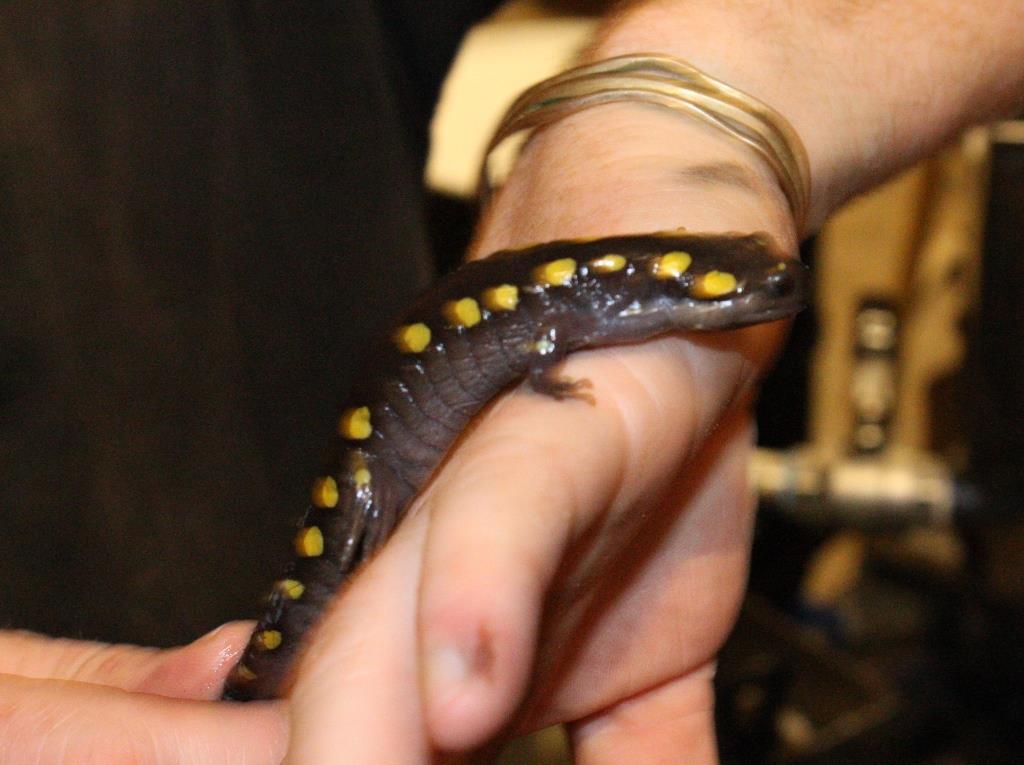 It turns out that frogs were not the only wandering amphibians that night, as a salamander was spotted, crossing the concrete floor. The salamander, of course, was spotted long before it crossed the concrete floor; we just didn’t see it until then.