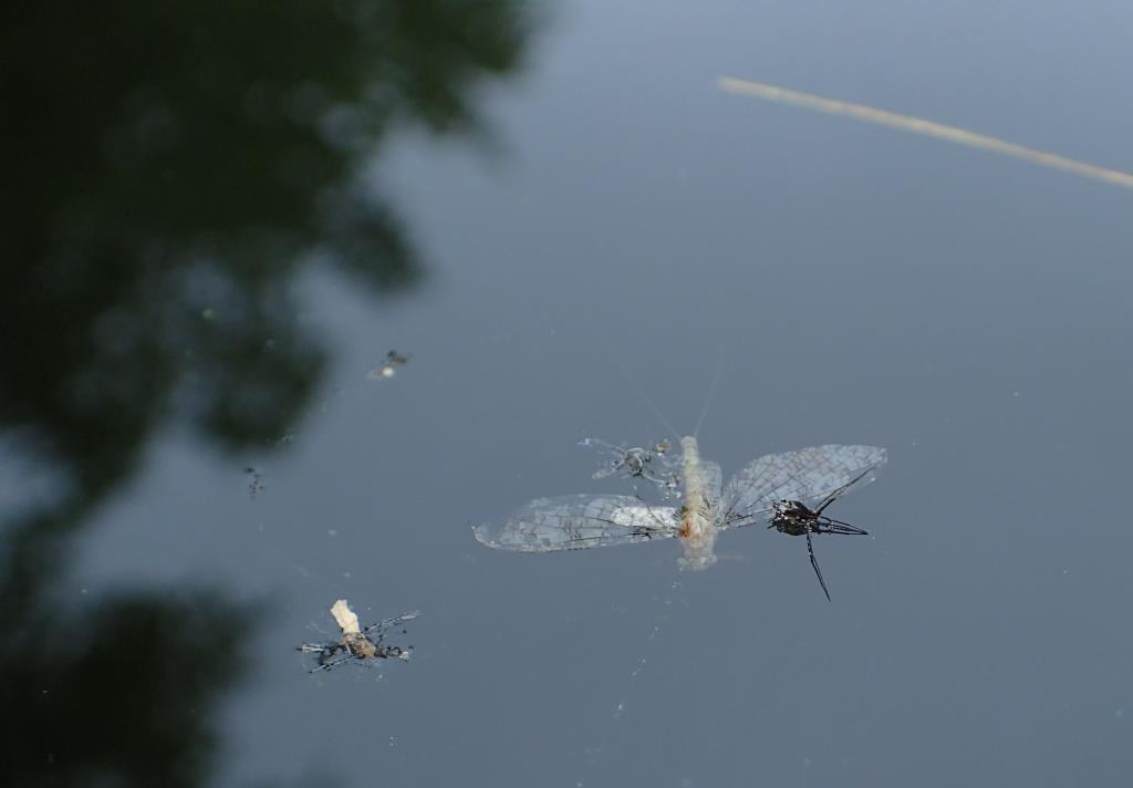 Spent, adult mayflies settle to the surface and die, having mated so others of their kind will live and feeding a little bit of everything else with their carcasses. I wonder if they realize that the moment was all there was?