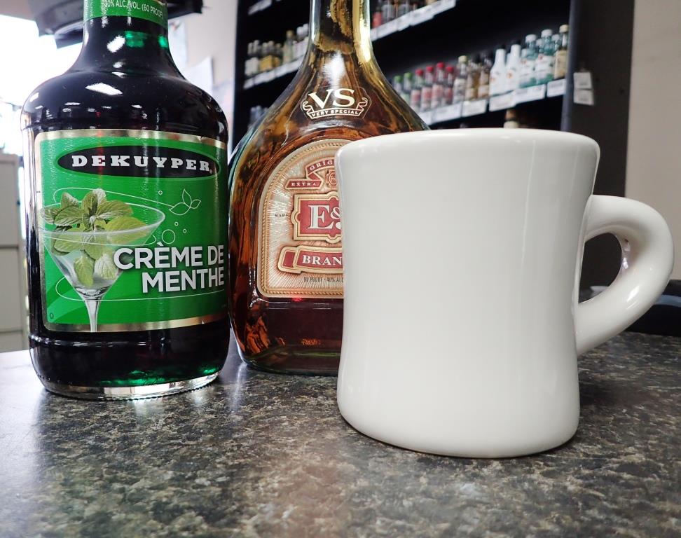 Stinger Recipe: Pour brandy, add creme de menthe to taste, guzzle.