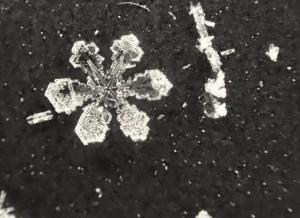 Great flake pictures Quill! That little black board provides a better backdrop than my coat sleeve does. Love the winter blues too! Happy winter solstice and Merry Christmas to you and all the critters and flakes at Fish in a Barrel Pond.