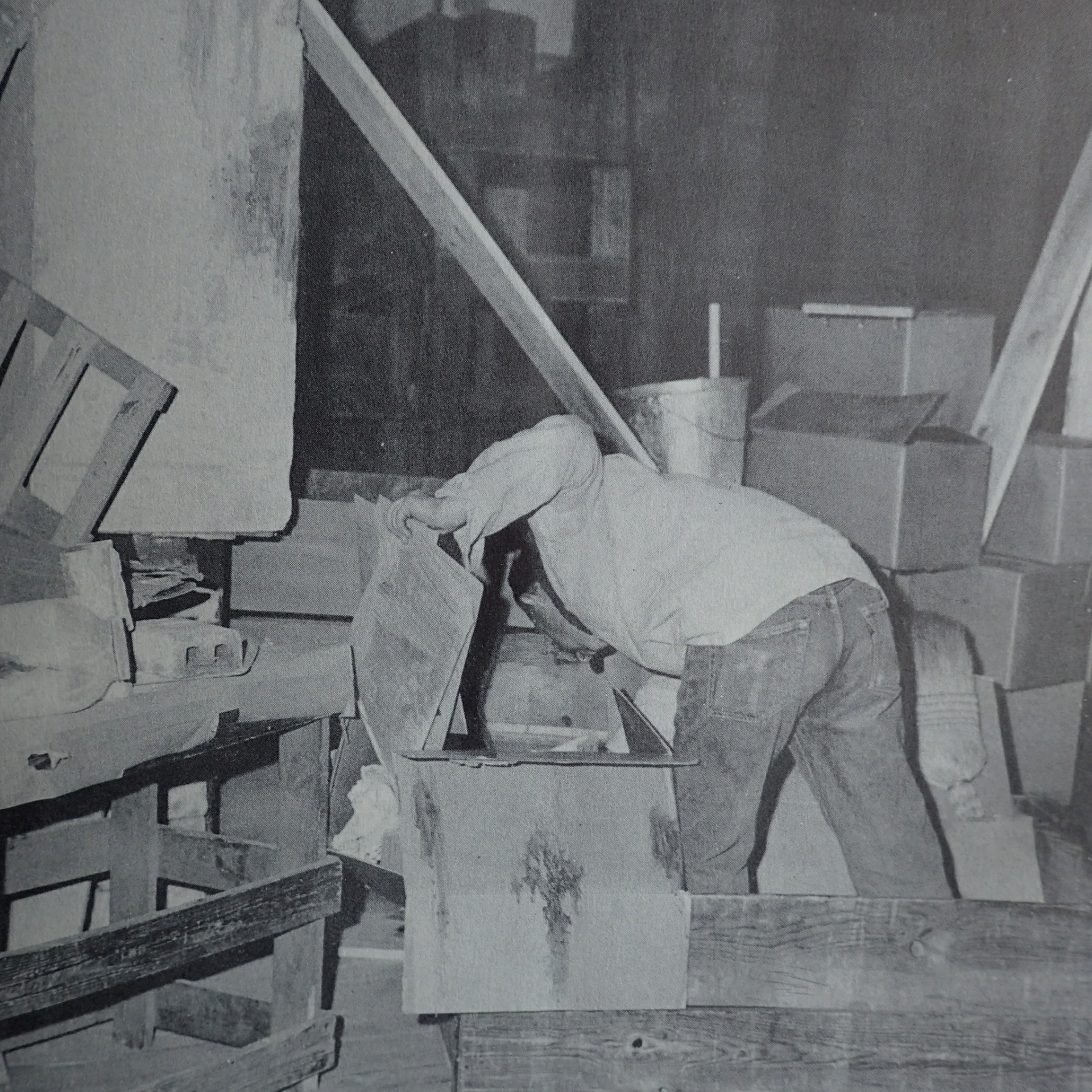 A discussion ensued regarding the fairness of making only one giant brush so it was decided to cut the base in two, which took a day and a half. Only the firmest, strongest opinions could ever lift either piece, but Eugene and Purly were confident they would sell and felt this was the best choice as it would solve the problem of having one color of paint left over.