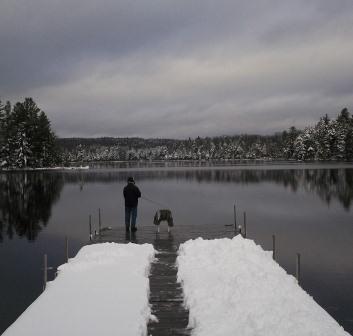 The camps have been closed for nearly a month but members may fish from the main dock, if they wish, until the lake is covered with ice. Not many of them do, and after more than a foot of heavy, wet snow fell on Wednesday, I figured fishing was done for the year. The lake remains free of ice, so casting is still possible, but after struggling to get chains on the tractor, clearing the dooryard and digging paths to the barn and the chicken coop, digging out a spot for some yo-yo to fish from was not high on my agenda.
